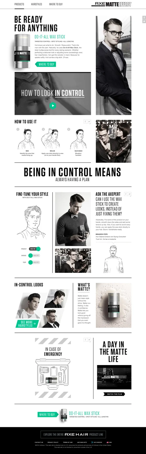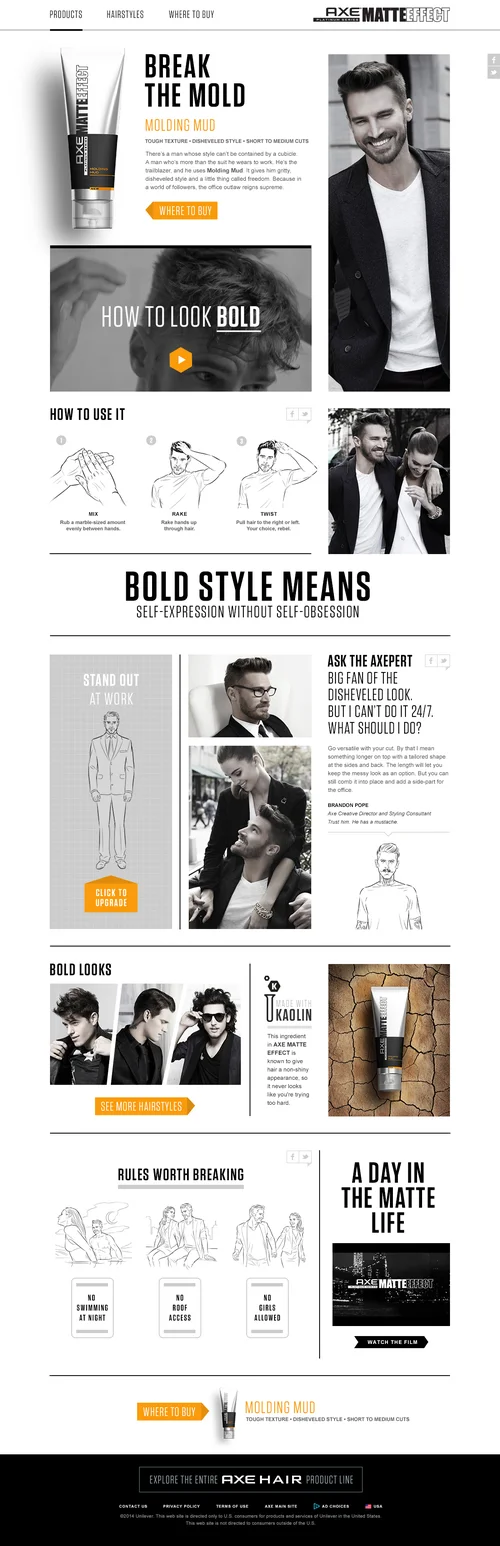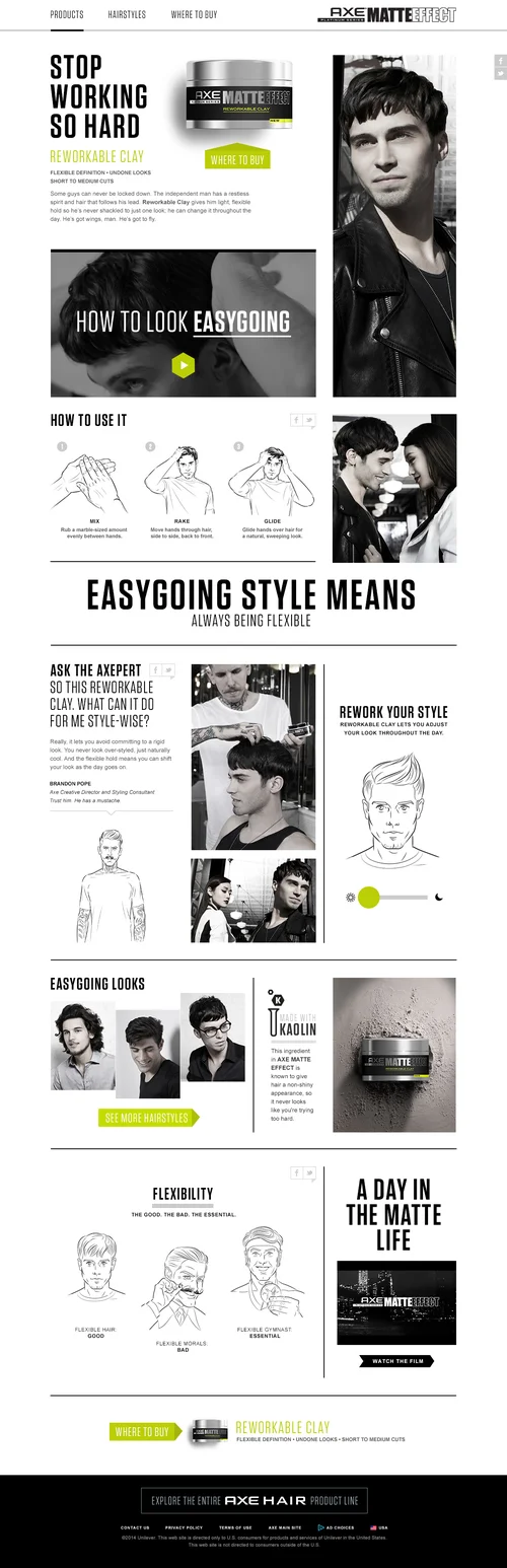 Enter AXE Matte Effect, a collection of premium hair products, targeted at young men who were new to the category and looking to evolve their style. So how do we speak to this man? By creating a confident new brand with a lighthearted tone of voice, bold visual style, and elevated-but-relatable photography.
